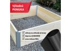 - Dĺžka je na vás. Naše záhony DoSadu ponúkame v našom konfigurátore do dĺžky 250 cm. Pokiaľ chcete dlhšie, využite náš dopytový formulár. Pri záhonoch nad 2 m dĺžky je súčasťou dodávky spevňujúca konštrukcia. Tá sa skladá z dvoch predvŕtaných hliníkových profilov V, ktoré sa zvisle priskrutkujú na vnútorné protiľahlé steny záhonu, a ďalej priečnych hliníkových profilov I ("páskovín"), ktorými sa steny záhonu spoja. Táto konštrukcia zabráni vydutiu stien záhona tlakom zeminy.