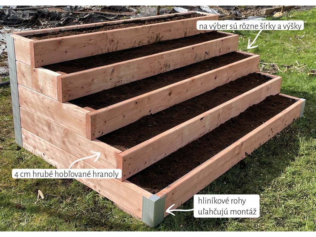 Kaskádový záhon je ideálny na pestovanie jahôd, byliniek a aj zeleniny. Rastlinkám poskytuje vlastný oddelený priestor.Pokiaľ chcete oživiť svoju záhradu netradičným prvkom, je to tá pravá voľba. Vďaka odstupňovanej výške sa ľahko zalieva aj žne.